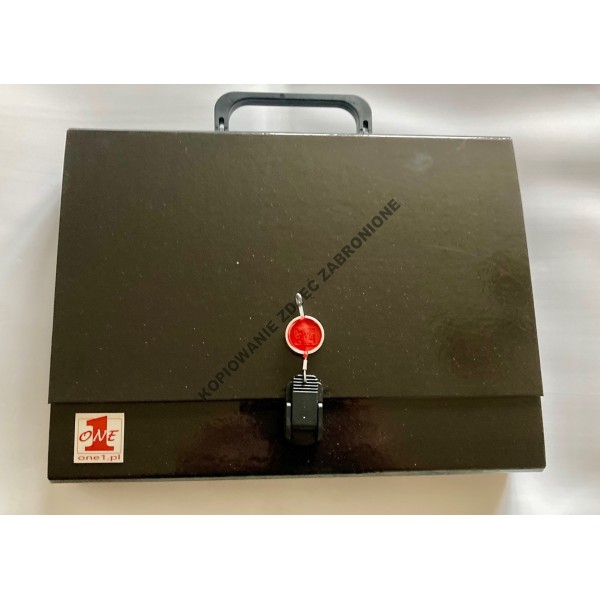 Teczka depozytowa służąca do deponowania dokumentacji niejawnej /instrukcji, wydruków, płyt CD, dyskietek itp./ w kancelarii tajnej lub mobilizacyjnej: - przystosowana do plombowania za pomocą referentki, - wykonana ze sztywnej, dwustronnie gładzonej tektury 2 mm, - okładka powleczona folią PP, - posiada plastikową sztywną rączkę, - zamykana na zamek plastikowy, - otwarcie...