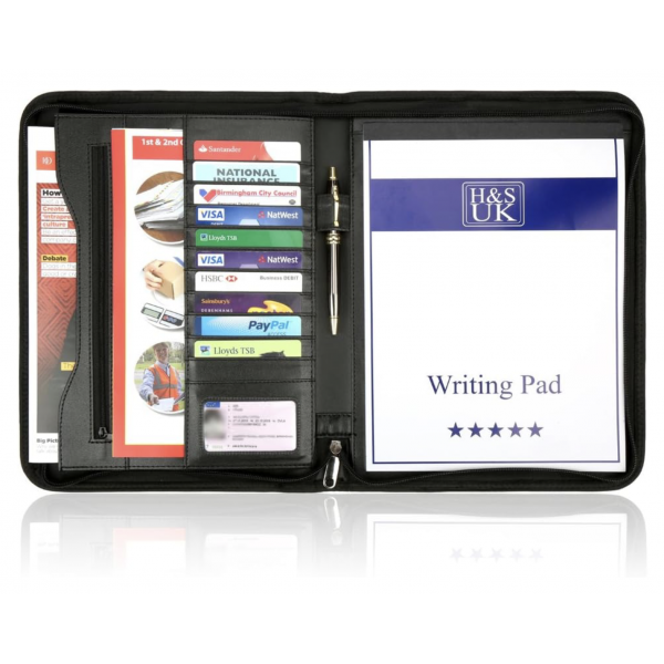 Teczka konferencyjna SB-122 Elegancka i funkcjonalna teczka konferencyjna zawiera w sobie wszystkie elementy jakie przedstawione są na foto. Starannie wykonana z wysokiej jakości i dużej wytrzymałości sztucznej skóry - Polichlorek winylu (PVC). Zamykana na zamek błyskawiczny.