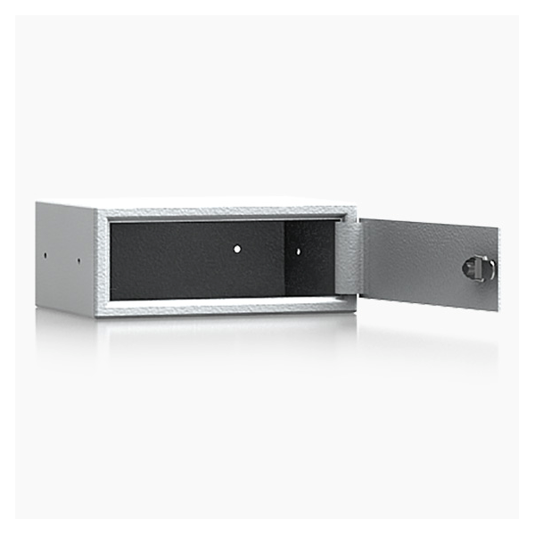 Niewielka skrytka depozytowa służąca do przechowywania telefonów komórkowych /kluczy, pieczęci , drobnych rzeczy wartościowych, itp./. - Korpus: jednościankowy o grubości 1,5 mm - Drzwi: jednościankowe o grubości 3 mm - Zamknięcie: 1 stronne, językiem zamka - Otwory do montażu: tył x 2, boki x 2 - Waga (kg) 3 - Pojemność (l) 4 - Wymiary zewnętrzne (WxSxD mm) 100 x 250 x...