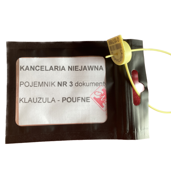 Zawieszka ewakuacyjna-kontrolka służy do krótkiego opisu zawartości ewakuowanych pojemników, worków, toreb itp. Zakłada ją osoba odpowiedzialna za ewakuację dokumentów niejawnych. Wykonana z foli mylarowej /aluminiowej/, posiada zamek błyskawiczny strunkowy z listwą uszczelniającą. Całkowicie niezamakalna. Konstrukcja z przeźroczystym okienkiem i otworem do zawieszenia pozwala umieścić...