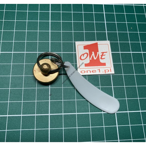 Wykonana jest z wysokiej jakości plastiku, trwała i bezpieczna w użyciu, zaopatrzona w metalowe kółko pozwalające na przyczepienie do referentki w formie breloka.
