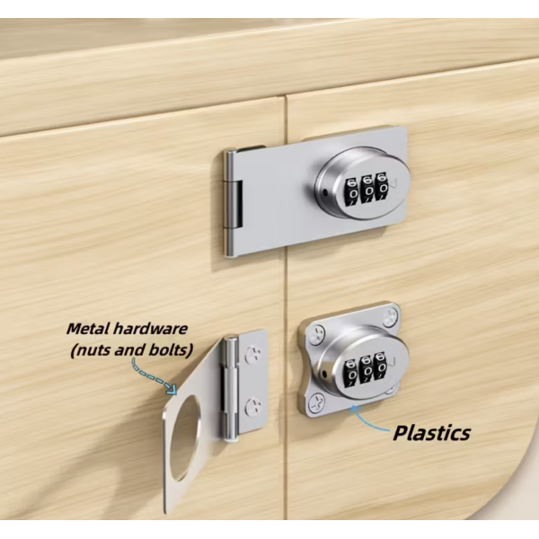 Mechaniczny - bezpieczny, bezkluczykowy - zamek do szafki, odpowiedni do drzwi szop, szaf, skrzyń, łazienek, na zewnątrz i wewnątrz pomieszczeń.