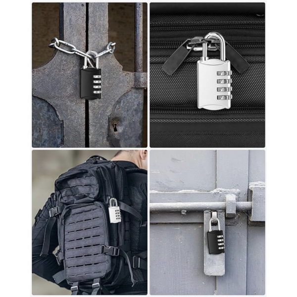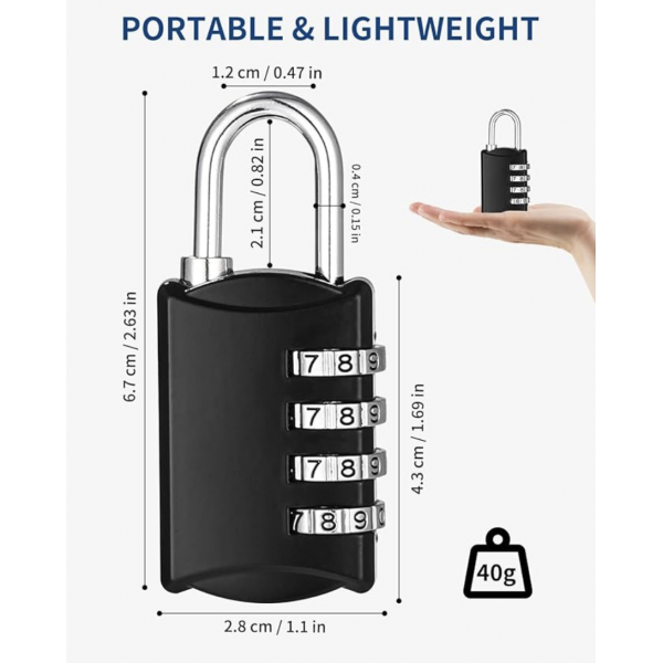 Kłódka z 4-cyfrowym kodem numerycznym, wykonana ze stopu cynku, odporna na warunki atmosferyczne.