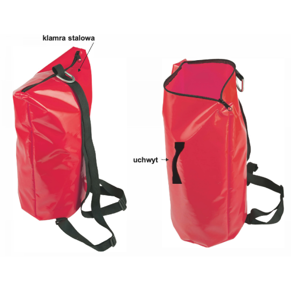 W skład kompletu wchodzą: - WOREK służący do transportu ewakuowanego sprzętu oraz dokumentacji niejawnej /osobowe, zastrzeżone, poufne itp./. Chroni przed uszkodzeniami mechanicznymi i zamoknięciem. Wykonany z wzmocnionego PCW. Posiada 2 taśmy (regulowane) do przenoszenia na plecach, 1 uchwyt boczny, oraz klamrę stalową typu "D". Worek wyposażony jest w zamek błyskawiczny...