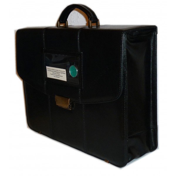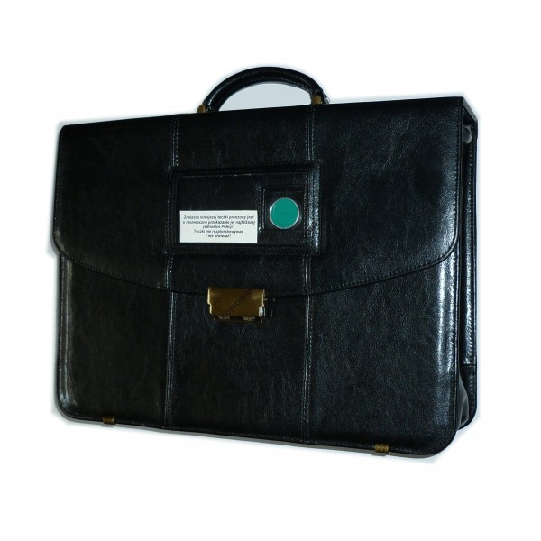 Bardzo elegancka skórzana teczka, wykonana zgodnie z Rozporządzeniem Prezesa Rady Ministrów z dnia 07.12.2011 roku w sprawie nadawania, przyjmowania, przewożenia, wydawania i ochrony materiałów zawierających informacje niejawne - Dz.U.2011.271.1603. Sztywne dno i boki. Przegroda zasuwana na suwak przystosowany do plombowania za pomocą referentki lub plomby jednorazowej typu...