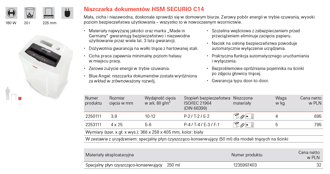 NISZCZARKA HSM SECURIO C14 - 2250111