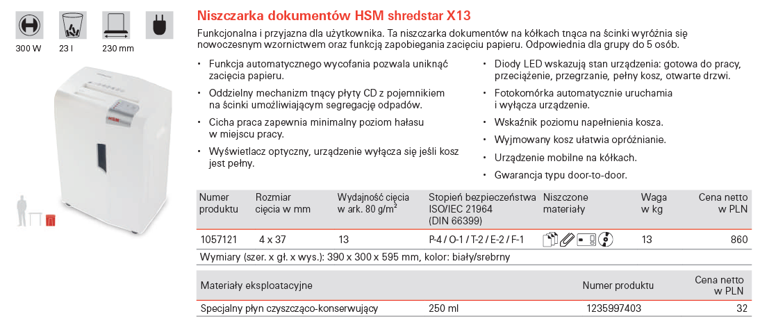 Poziom bezpieczeństwa (DIN 66399) - P-4/O-1/T-2/E-2/F-1