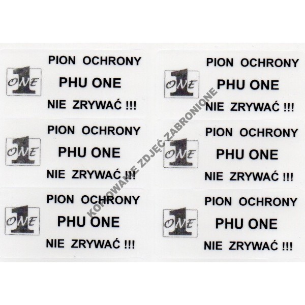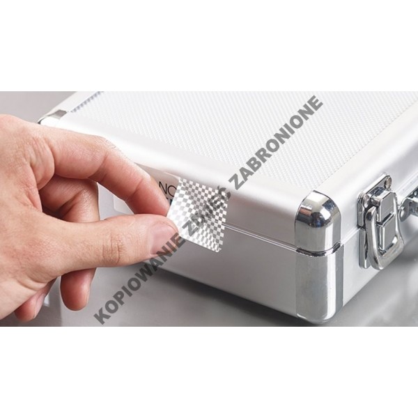 Próba odklejenia etykiety od podłoża jest praktycznie niemożliwa bez pozostawienia śladów, gdyż po oderwaniu etykiety pozostaje widoczny wzór szachownicy i nie ma możliwości ponownego przyklejenia etykiety.