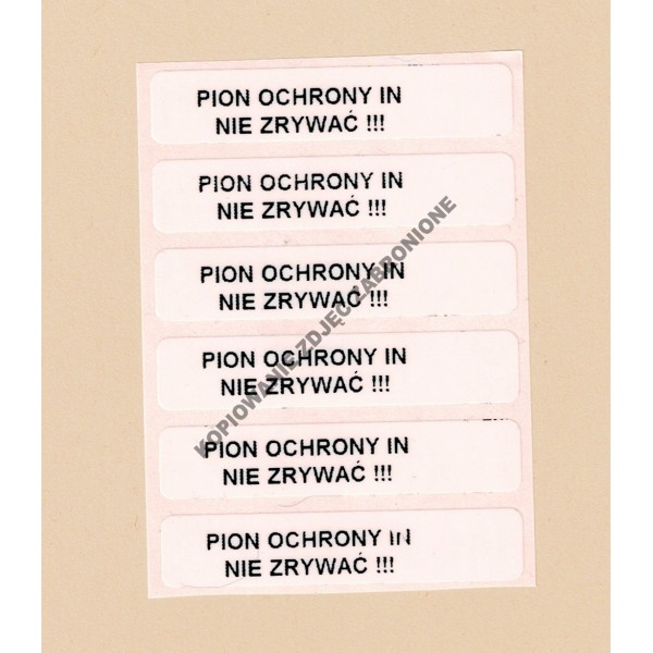 Napis na plombie: "PION OCHRONY IN NIE ZRYWAĆ!!!"