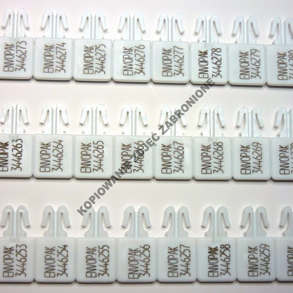 Kolor magazynowy biały powoduje, że numer plomby jest najbardziej widoczny spośród innych kolorów plomb. Możliwość zamówienia innego koloru przy zakupie co najmniej 5000 szt. /20 opakowań/.