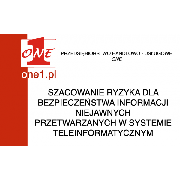 UWAGA - Wersja elektroniczna (.pdf) na nośniku PenDrive. Szacowanie ryzyka dla bezpieczeństwa informacji niejawnych przetwarzanych w systemie teleinformatycznym.