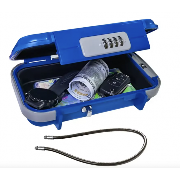 Mini sejf osobisty. Zabezpiecza rzeczy osobiste /telefony, portfele, biżuterię, kluczyki, paszporty/ podczas podróży, w pracy, w domu, w akademiku, na siłowni, w szpitalu itp.