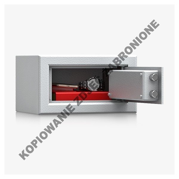 • Klasa S2 zgodnie z IMP wg PN-EN 14450:2006. • Korpus: dwuściankowy o grubości 30 mm • Drzwi: dwuściankowe o grubości 52 mm • Zamknięcie: 4 stronne ryglowanie • Kąt otwarcia drzwi - 90 st. • drzwi standardowo zamykane zamkiem kluczowym VdS-klasa I/IMP-klasa A (standardowo z dwoma kluczami). • Otwory do montażu - 2 w dnie i 2 w ścianie tylnej - przelotowe. • Lakier: RAL 7035...