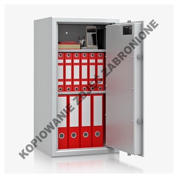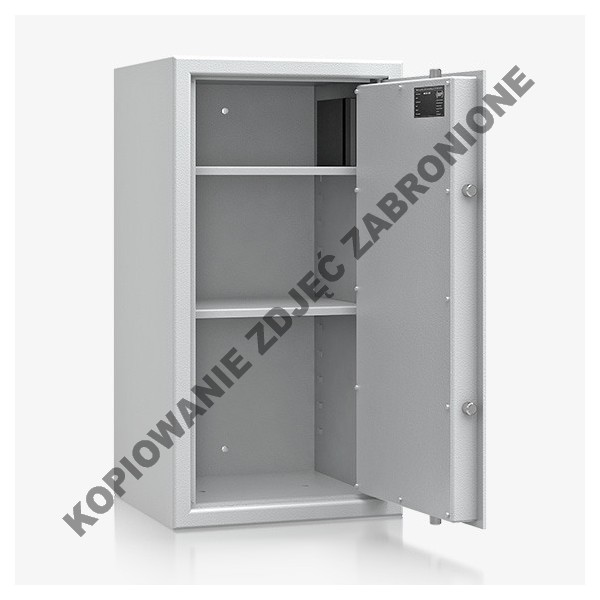 • Klasa S2 zgodnie z IMP wg PN-EN 14450:2006. • Korpus: dwuściankowy o grubości 30 mm • Drzwi: dwuściankowe o grubości 52 mm • Zamknięcie: 4 stronne ryglowanie • Kąt otwarcia drzwi - 90 st. • Drzwi standardowo zamykane zamkiem kluczowym VdS-klasa I/IMP-klasa A (standardowo z dwoma kluczami). • Otwory do montażu - 2 w dnie i 2 w ścianie tylnej - przelotowe. • Lakier: RAL 7035...