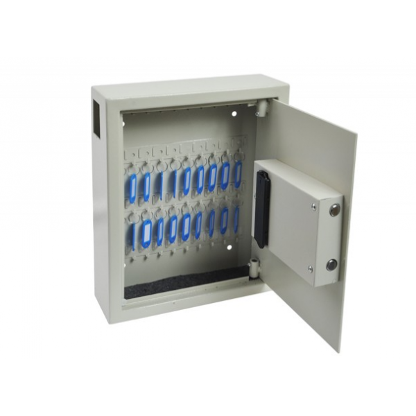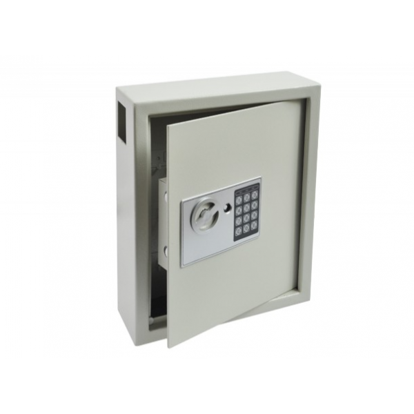 Wisząca szafka metalowa na klucze otwierana zamkiem elektronicznym, która umożliwia bezpieczne przechowywanie aż 44 kluczy i zapewnienie dostępu do nich np. współpracownikom w dużej firmie czy szkole. Ma ona zastosowanie także w hotelach, pensjonatach, przy wynajmie samochodów czy mieszkań. Może być wygodnym sposobem zabezpieczenia, porządkowania i zarządzania kluczami w warsztatach...