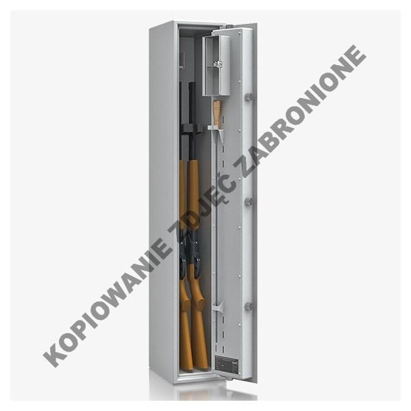 • Klasa S2 wg PN-EN 14450:2006 zgodnie z IMP. • Certyfikat nr P41/168/2015 (6264). • Korpus dwuściankowy o grubości 30 mm. • Drzwi dwuścianowe z blatem 3 mm. • Drzwi trzystronnie ryglowane, zamykane zamkiem kluczowym VdS-Klasa I/IMP- Klasa A (standardowo z dwoma kluczami). • Kąt otwarcia drzwi - 180 st. • Pokrętło 12 mm wystające. • Standardowo skrytka wewnętrzna zamykana...