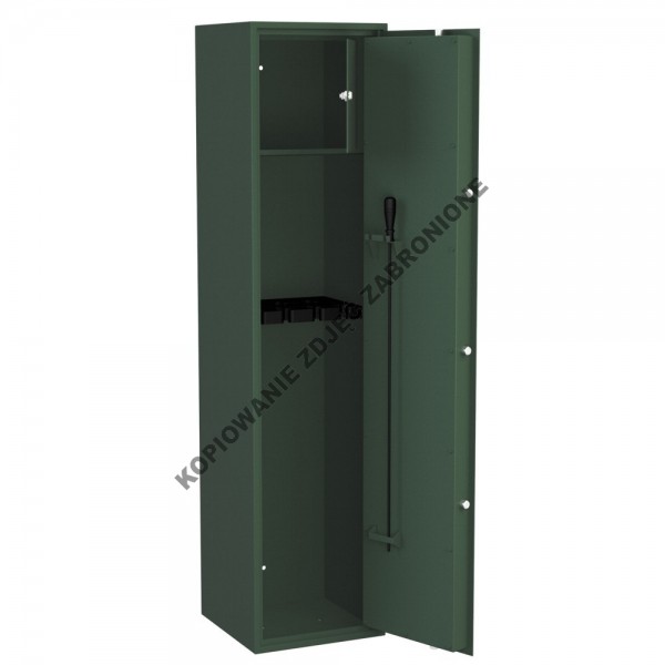 • klasa odporności na włamanie S1 wg PN-EN 14450:2006 • certyfikat IMP P41/169/2013 (5337) - kopia certyfikatu dodawana jest do każdego produktu • plakietka IMP świadcząca o klasie S1 z hologramem widnieje na wew. stronie drzwi • uchwyty na broń piankowe - 8 szt. • standardowo w szafie skrytka wew. 200 mm wysoka zamykana zamkiem cylindrycznym • korpus jednościanowy - 3 mm •...