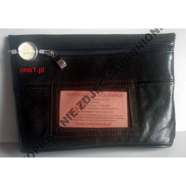 Wykonana z naturalnej skóry. Bardzo wytrzymała. Zaopatrzona w okienko identyfikacyjne. Zamykana na suwak.