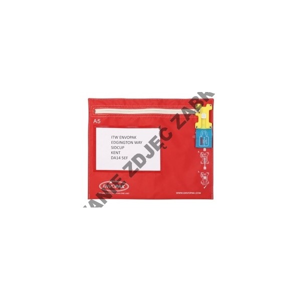 Torba firmy ENVOPAK (nylon kryty PCV). Przezroczyste okienko informacyjne, dostępne wyłącznie od wewnątrz, w rozmiarze standardowego zdjęcia. Nowa, całkowicie bezpieczna komora plombująca. Dostępna w kolorach niebieskimi i czerwonym /w zależności od stanu magazynowego/ . Wymiary: 300x250 mm Przystosowane do plomb ENVOPOLYSEAL™. Do nabycia w dzile...