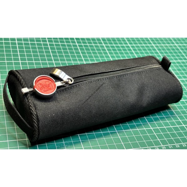 Zamykana na suwak. Kształtem przypomina tradycyjny piórnik.