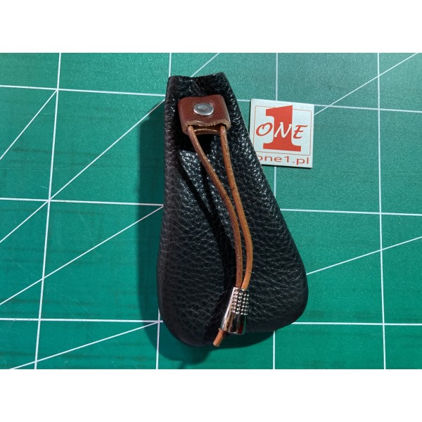 Woreczek wykonany z grubej naturalnej skóry koloru czarnego.