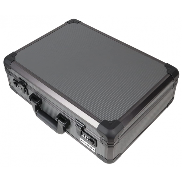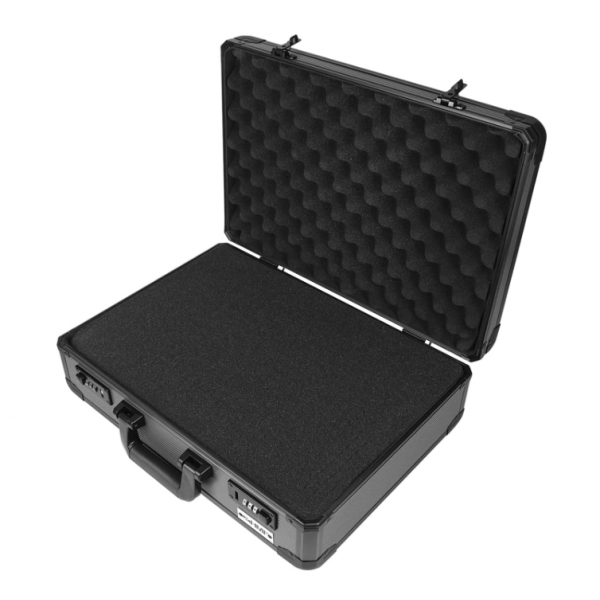 Wykonana z aluminium, wyposażona w dwa zamki szyfrowe. Ergonomiczna rączka zapewnia komfort użytkowania.