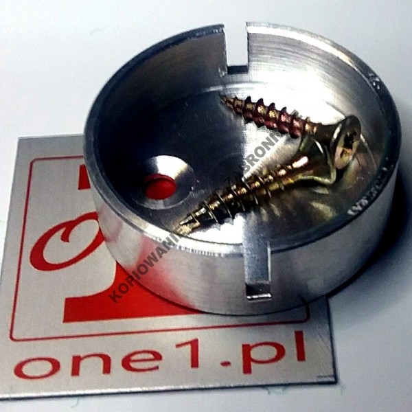 Aluminiowy kubek do plombowania w plastelinie za pomocą referentki. Niezwykle estetyczny i trwały. Mocowany do powierzchni za pomocą dwóch wkrętów. Może być wykorzystany zarówno do plombowania pomieszczeń, jak i pojemników, szaf, sejfów itp. Wymiary: - średnica zewnętrzna 30 mm, - średnica wewnętrzna 26 mm - wysokość 9,8 mm. W skład kompletu wchodzą: - kubek - 2 uniwersalne wkręty. I...