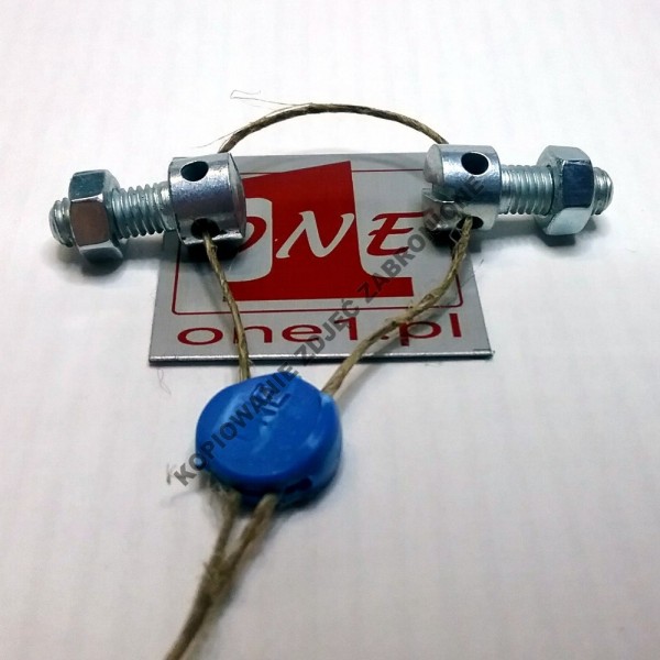 Niezwykle trwała, ocynkowana śruba służąca do zamocowania elementu plombującego /sznurka/ wraz ze stosowną nakrętką.