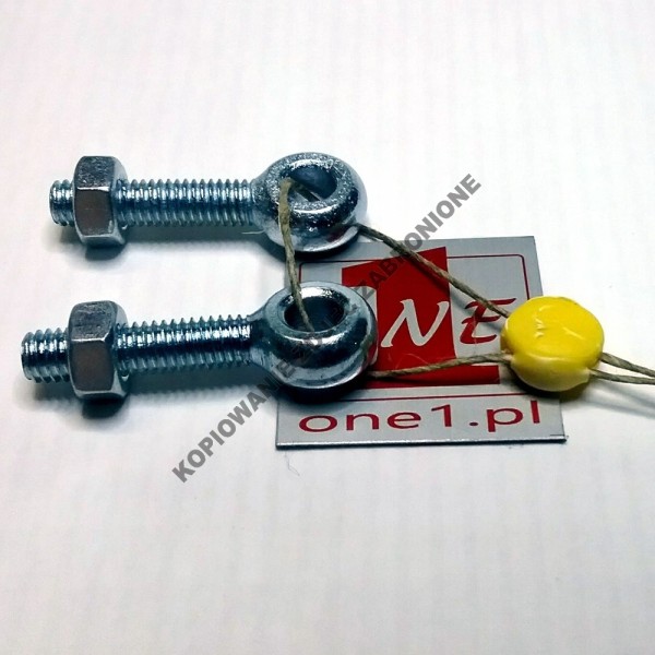 Niezwykle trwały, ocynkowany element plombowniczy. Średnica oczka wynosząca 6 mm pozwala na użycie dowolnej plastikowej plomby jednorazowej. Całość po zaplombowaniu wygląda niezwykle estetycznie. Dzięki nierdzewnej warstwie zalecany do użycia przy plombowaniu bram garażowych, drzwi magazynowych, skrzyń itp. W skład zestawu wchodzą: - element plombowniczy - szt. 2 - nakrętka - szt. 2